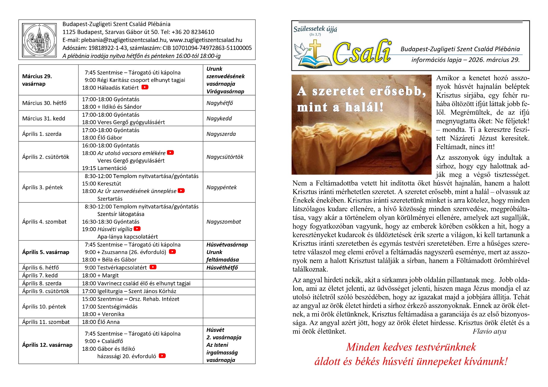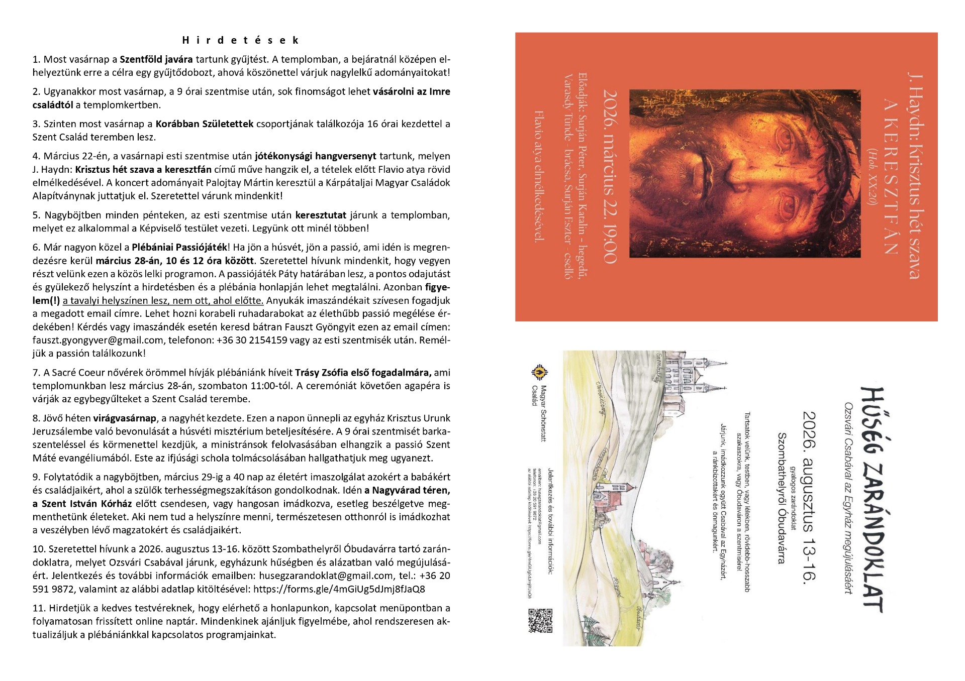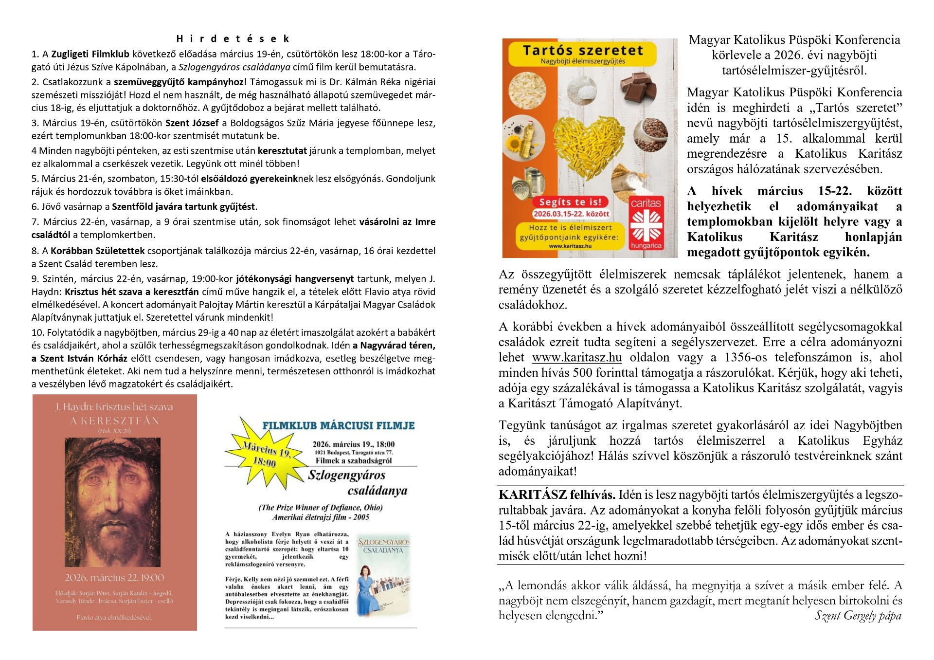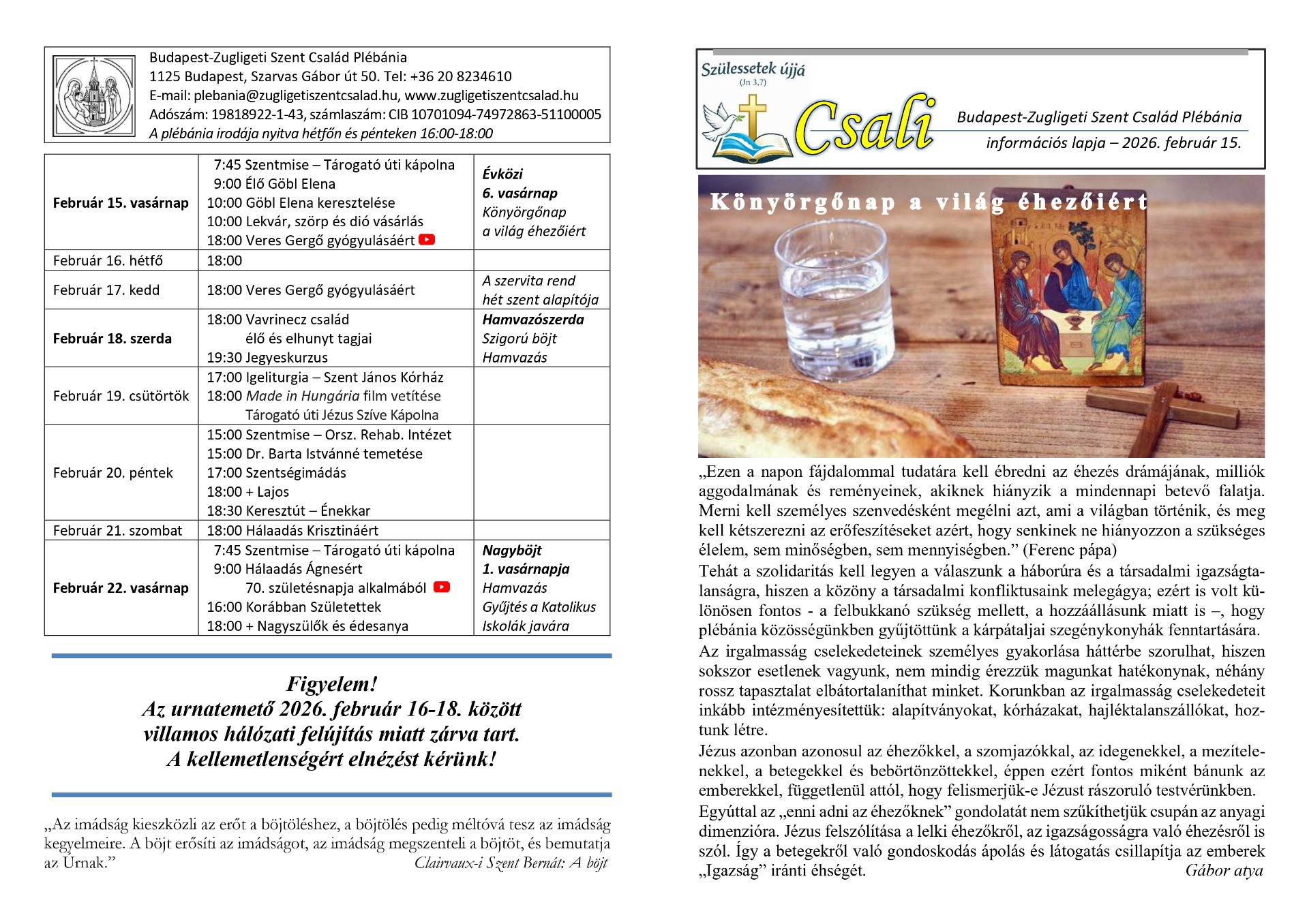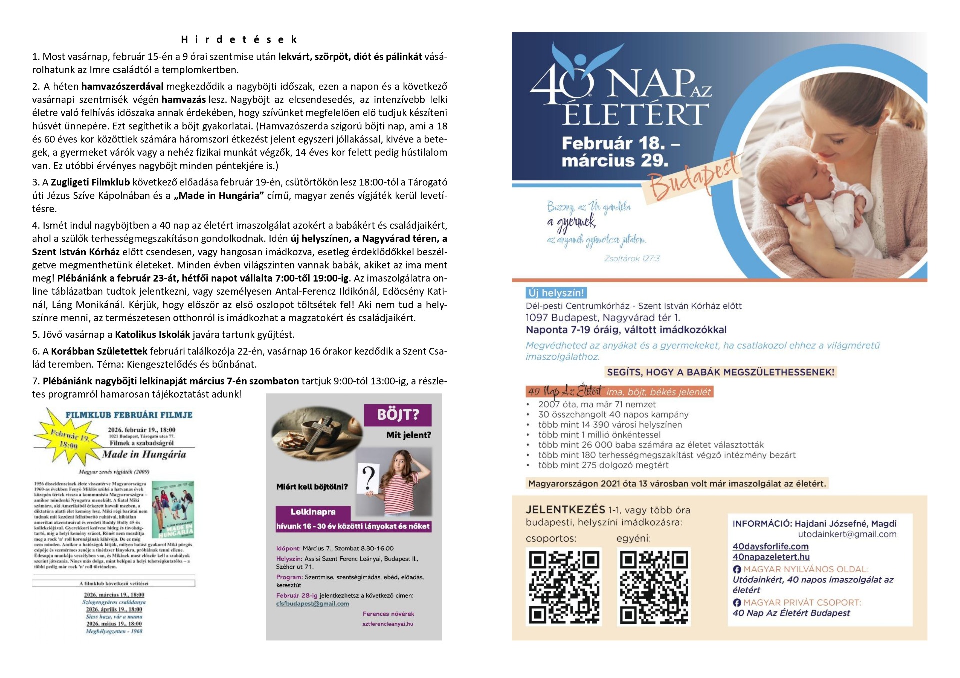 a Budapest-Zugligeti Szent Család Plébánia információs hetilapja